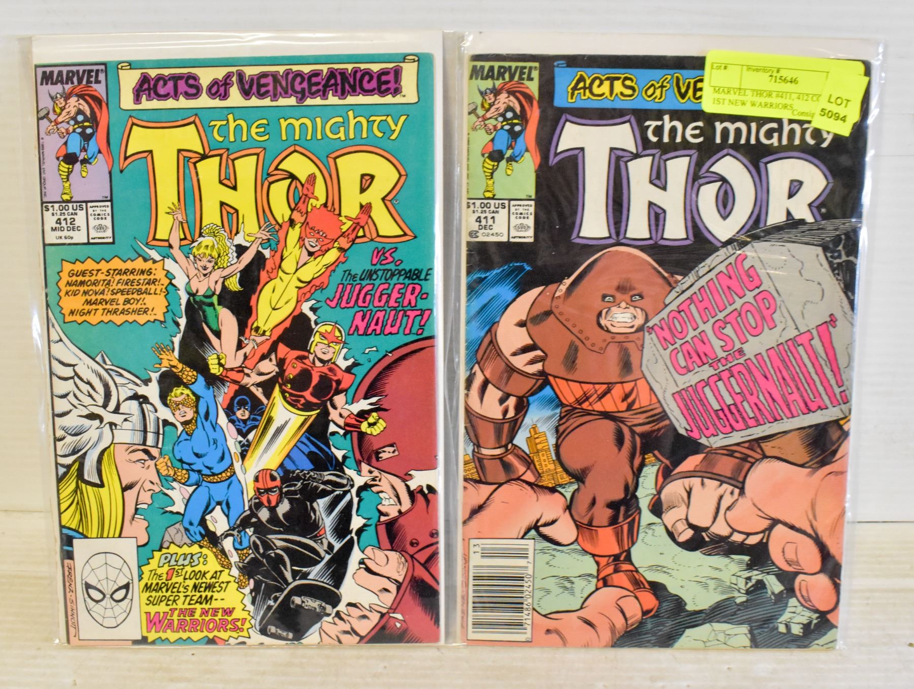 MARVEL THOR #411, 412 COMIC LOT, 1ST NEW WARRIORS