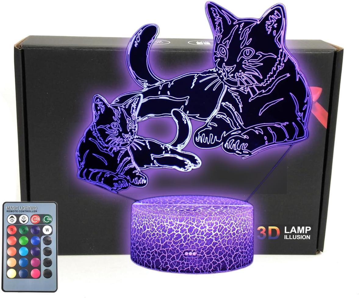 MARZIUS CATS PET 3D ILLUSION LED TABLE LAMP NIGHT LIGHT WITH GREETING CARD, LIGHTED BASE, 16 COLORS CHANGE, REMOTE CONTROL.