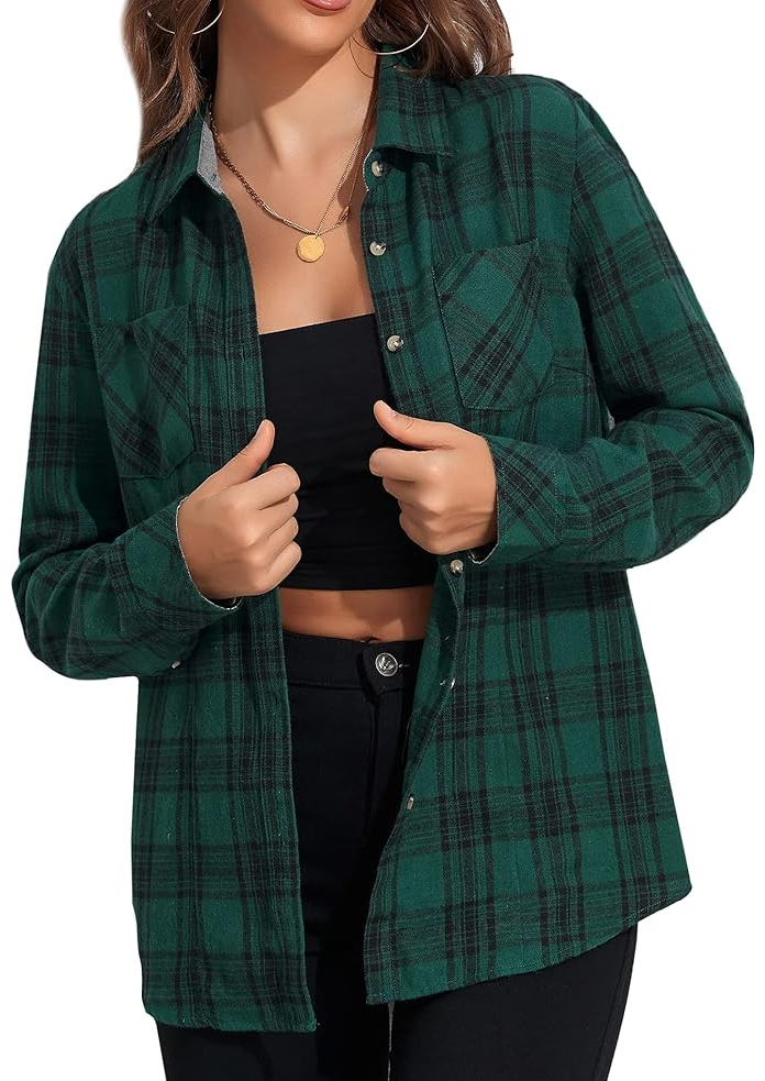 MARZXIN PLAID FLANNEL SHIRT FOR WOMEN OVERSIZED LONG SLEEVE BUTTON DOWN SHIRTS CASUAL LOOSE BLOUSE TOPS. LARGE