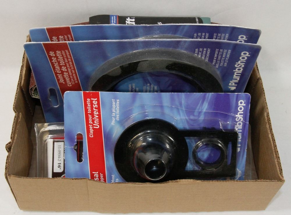 NEW IN PACKAGES. SANDING BELTS, TOILET FLAPPER TOILET RINGS, UNIVERSAL BATTERY TOP POST. TOOLS
