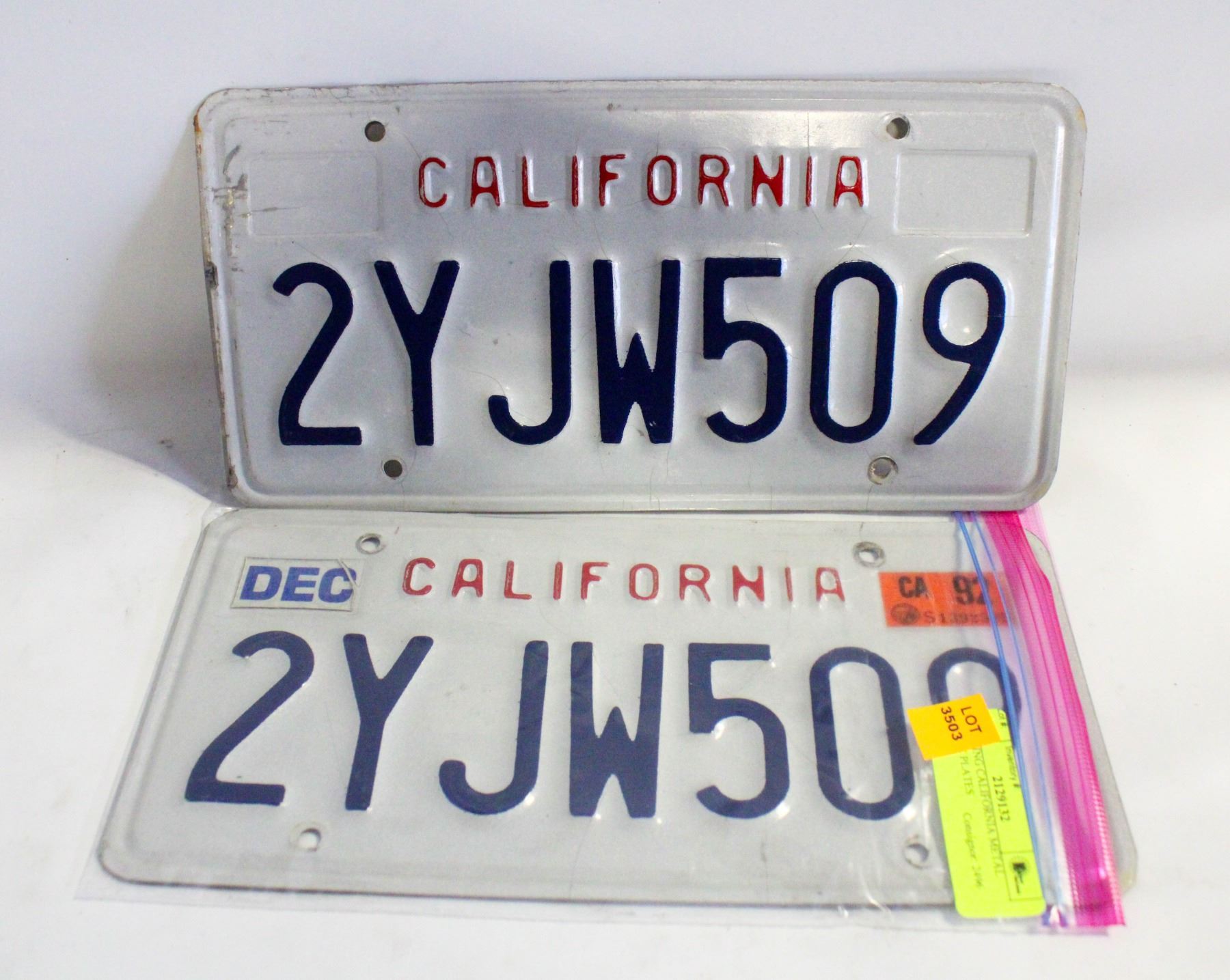 MATCHING CALIFORNIA METAL LICENSE PLATES