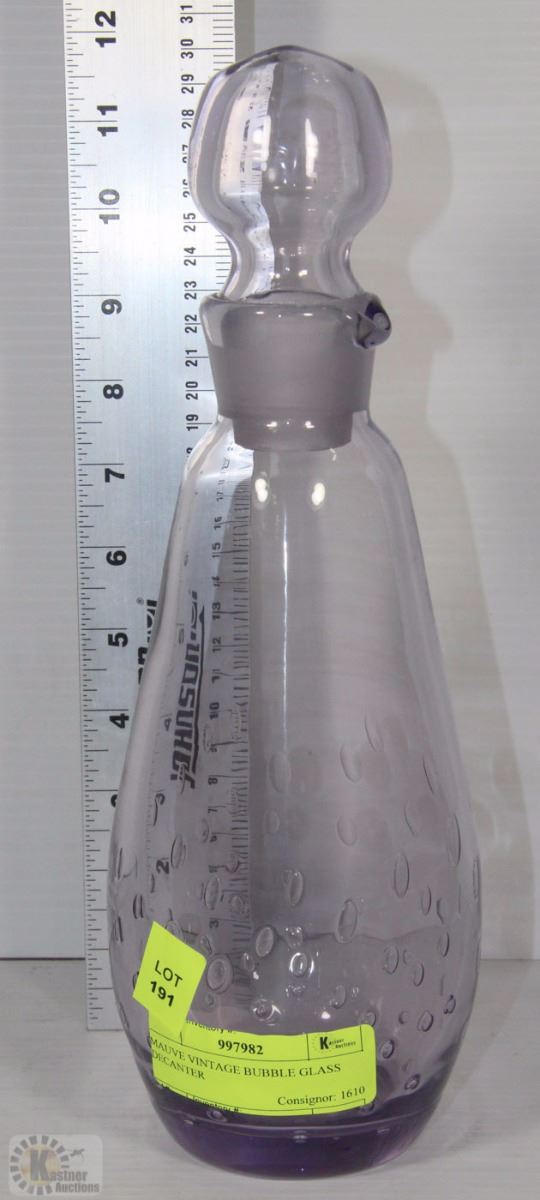 MAUVE VINTAGE BUBBLE GLASS DECANTER
