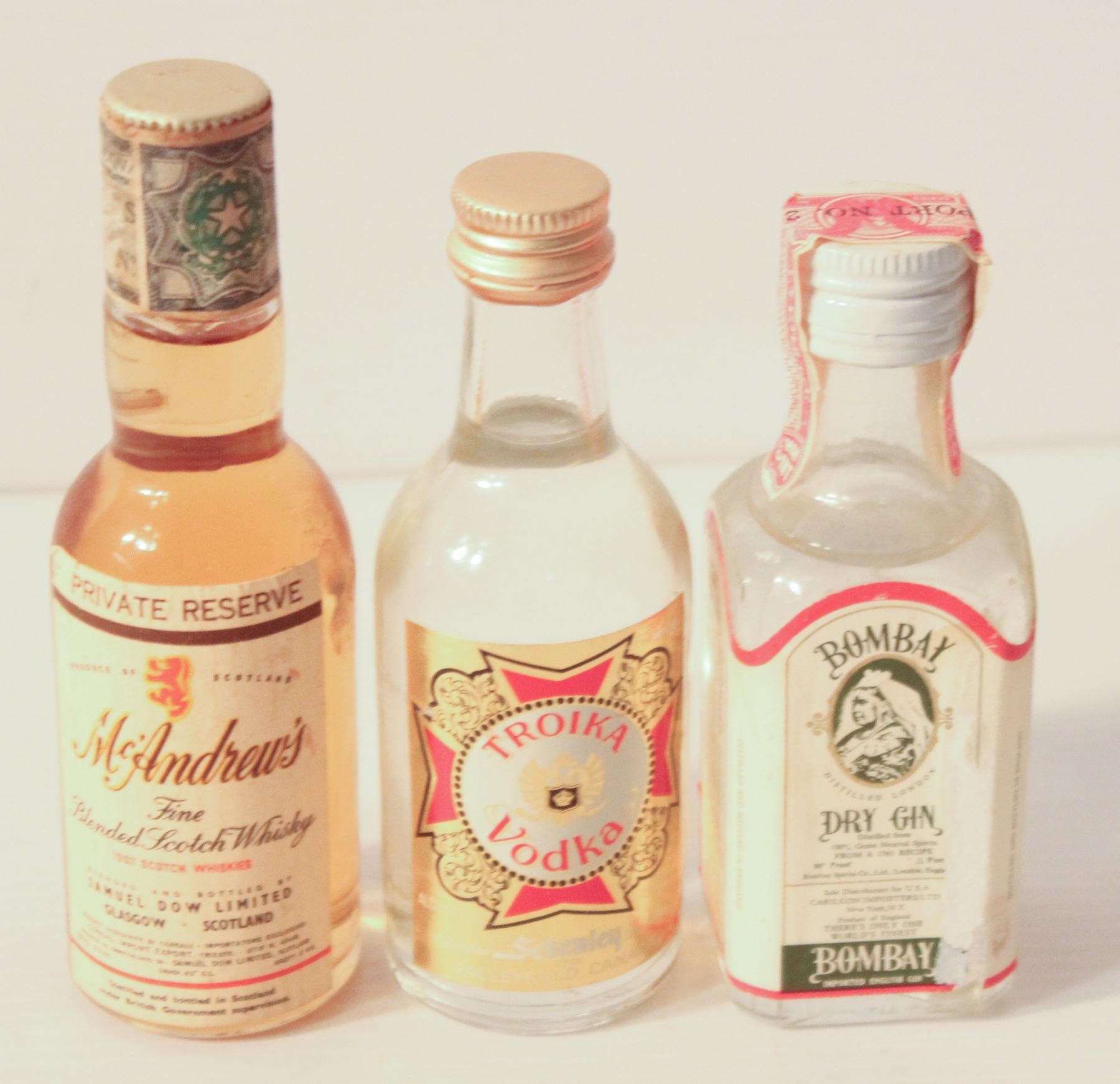 MCANDREWS SCOTCH, TROIKA VODKA, BOMBAY GIN