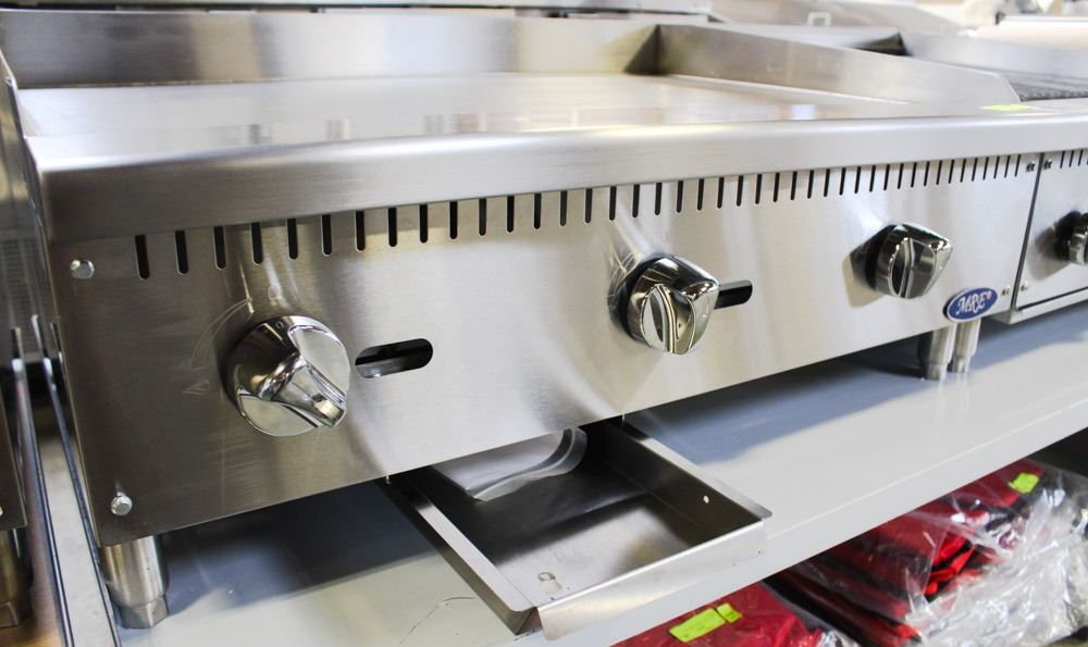 3 STAINLESS STEEL GAS BURNERS, STANDBY PILOTS , MANUAL CONTROLS STAINLESS STEEL STRUCTURE , ADJUSTABLE STAINLESS STEEL LEGS, 90,000BTU , MODEL #Y-ATMG-36. APPLIANCE