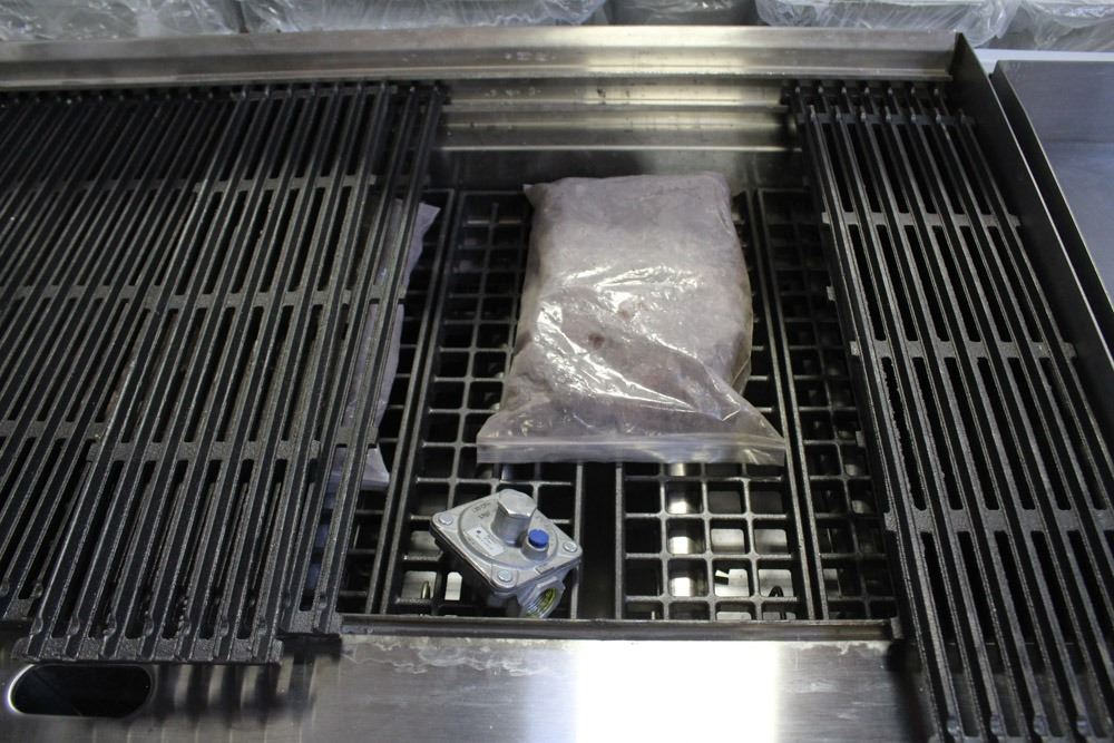 3 STAINLESS STEEL GAS BURNERS, STANBY PILOTS, MANUAL CONTROLS, STAINLESS STEEL STRUCTURE, ADJUSTABLE STAINLESS STEEL LEGS, 105,000BTU, MODEL #Y-ATCB-36. RESTAURANT APPLIANCES