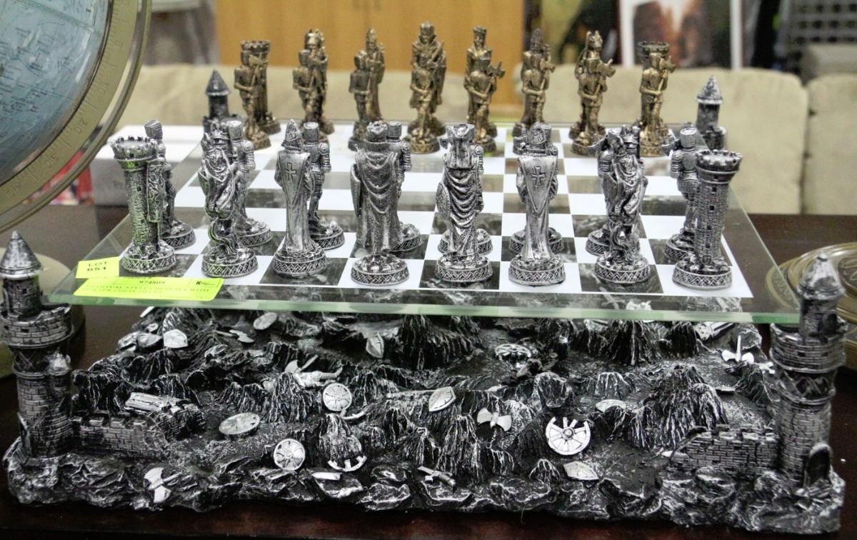 MEDIEVAL STYLE CHESS SET WITH PEWTER CHESS PIECES