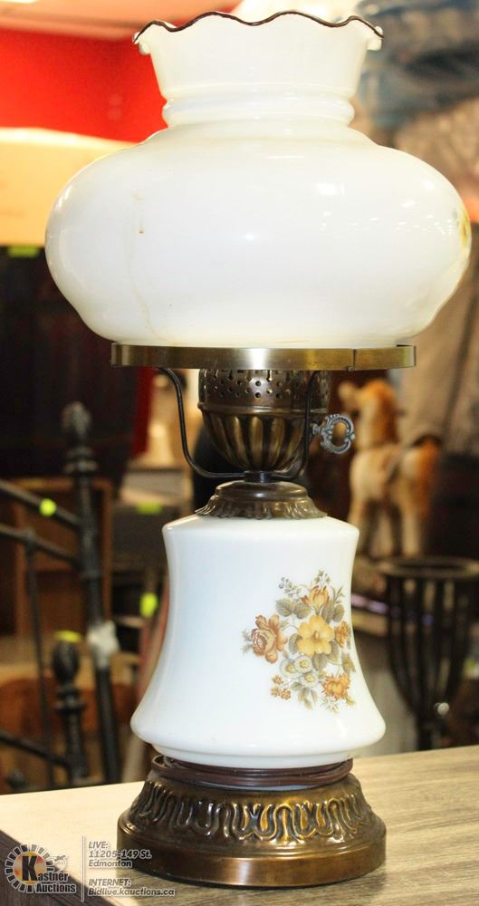 MEDIUM ANTIQUE MILK GLASS TABLE LAMP