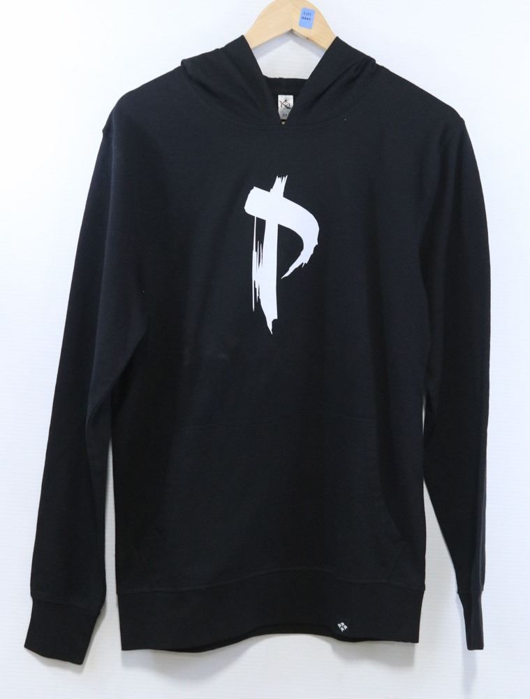 MEN'S BLACK PLUSH LOGO PULL OVER HOODIE SIZE SMALL
