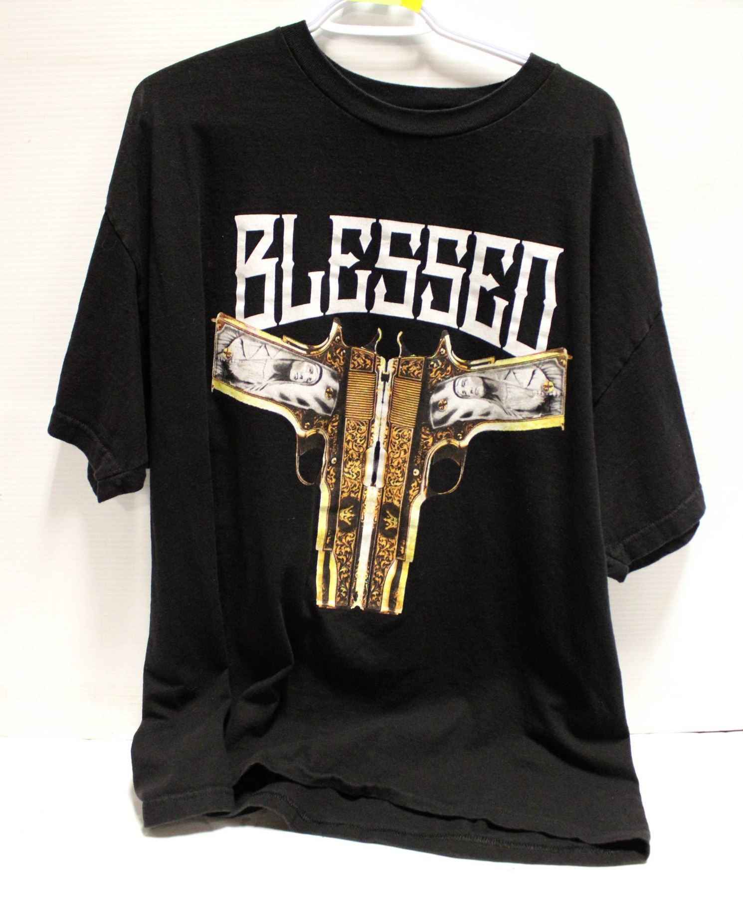 MENS 2XL BLESSED TSHIRT BLACK/GUNS THEME