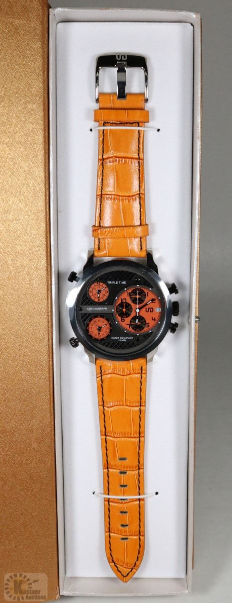 MENS ORANGE TRIPLE TIME CHRONOGRAPH WATCH