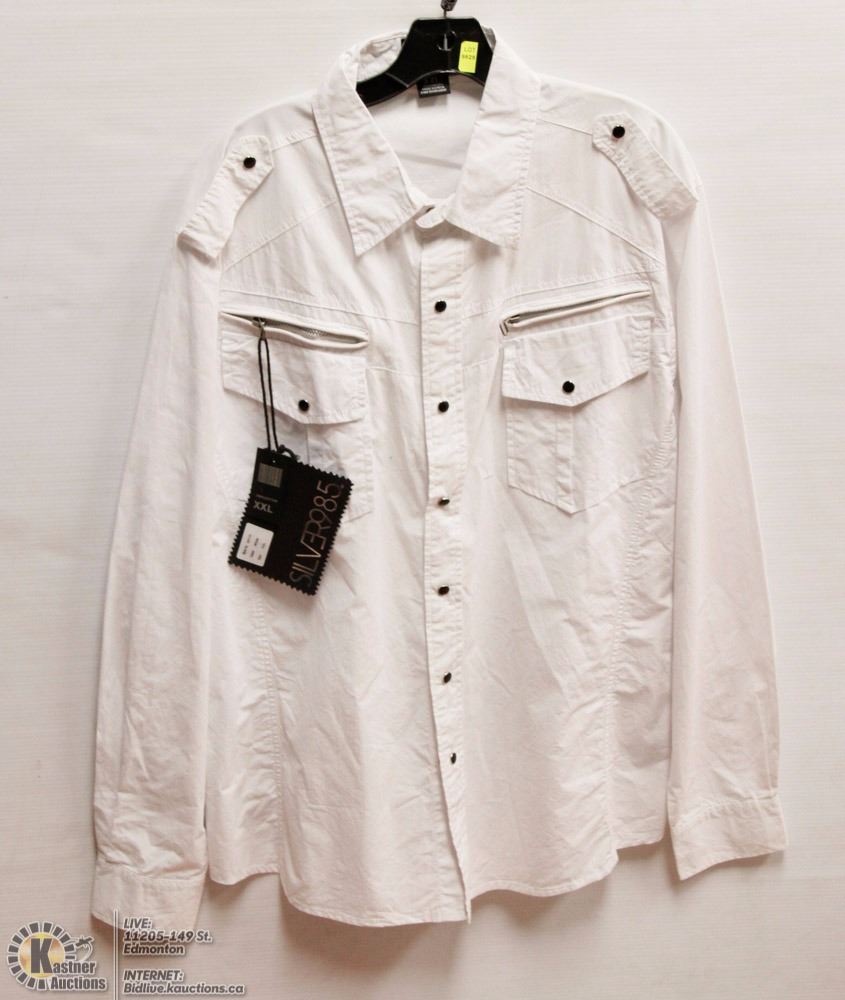 WHITE DRESS SHIRT WITH FAUX ZIPPER FRONT POCKET DETAIL