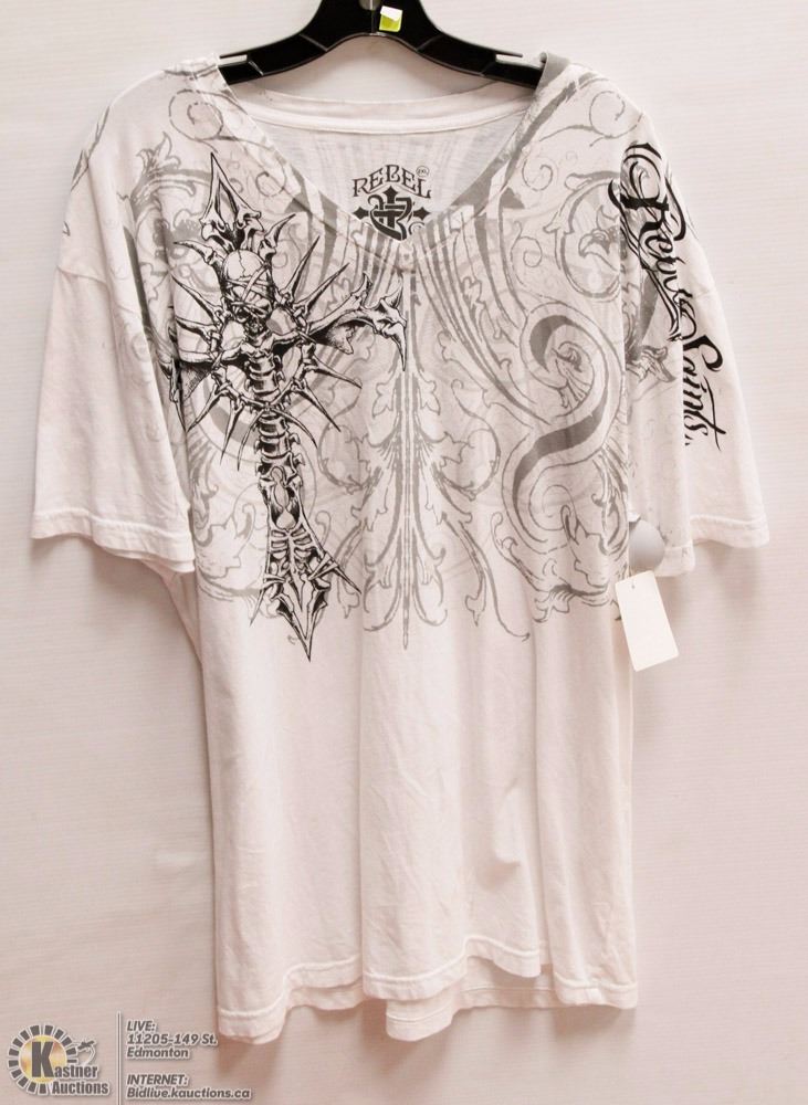MENS SIZE 2 XLARGE REBEL SAINTS V NECK GRAPHIC
