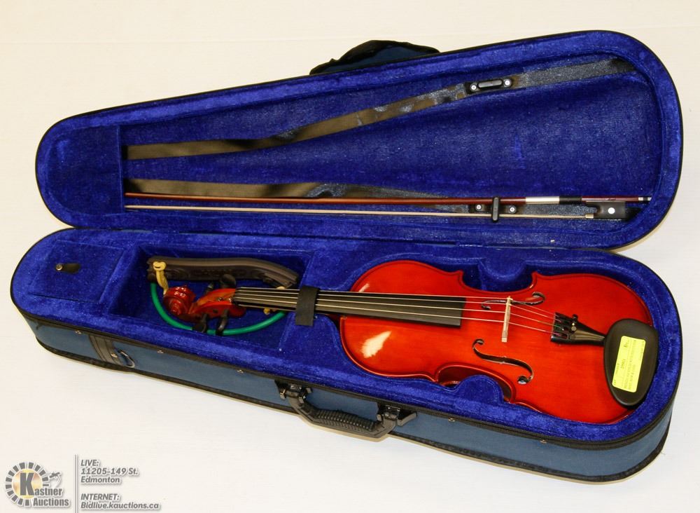 MENZEL 4/4 VIOLIN WITH SHOULDER REST, BOW & CASE.