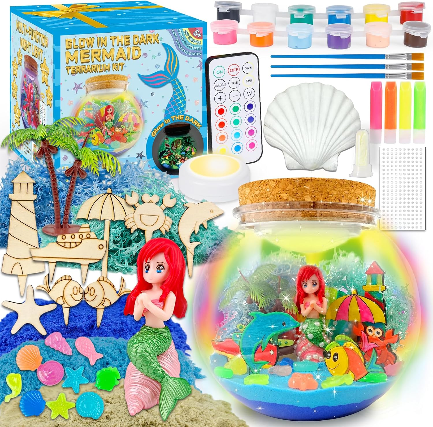 MERMAID TERRARIUM KIT FOR KIDS - ARTS & CRAFTS ACTIVITIES SETS WITH GLOW IN THE DARK PAINTING - DIY MERMAID TOYS BIRTHDAY GIFTS FOR GIRLS AGE 5, 6, 7, 8, 9, 10, 11 & 12 YEAR OLD(MERMAID TERRARIUM) | Category: Toys