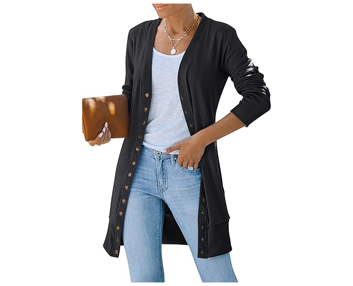 MEROKEETY WOMEN'S 2025 FALL LONG SLEEVE SNAP BUTTON DOWN SOLID COLOR KNIT RIBBED NECKLINE CARDIGANS