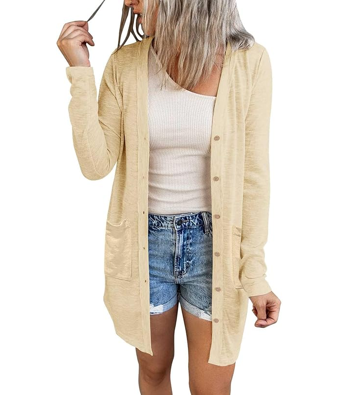 MEROKEETY WOMEN'S OPEN FRONT LIGHTWEIGHT CARDIGAN LONG SLEEVE BUTTON DOWN LOOSE OUTWEAR WITH POCKETS | Category: Clothing/Shoes
