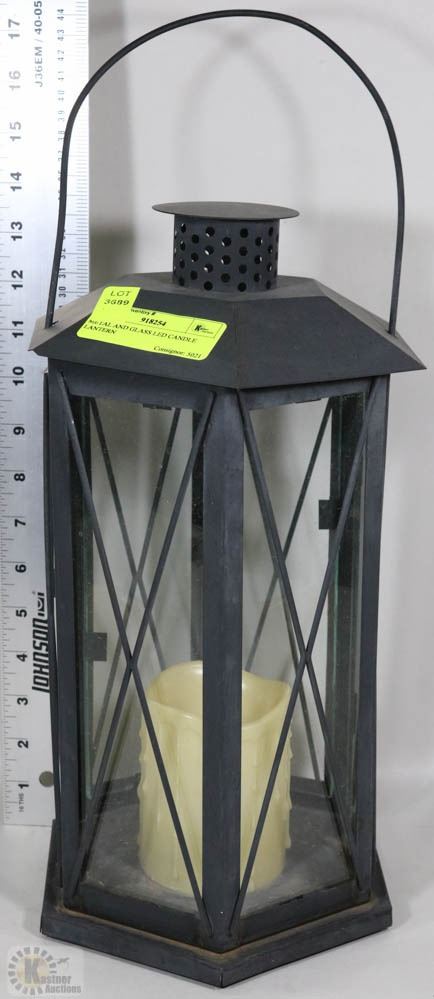 METAL AND GLASS LED CANDLE LANTERN