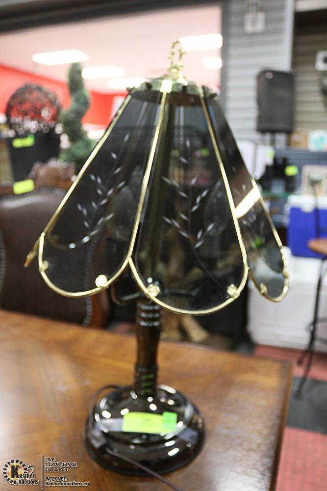 METAL AND GLASS TRI LITE LAMP 22" TALL