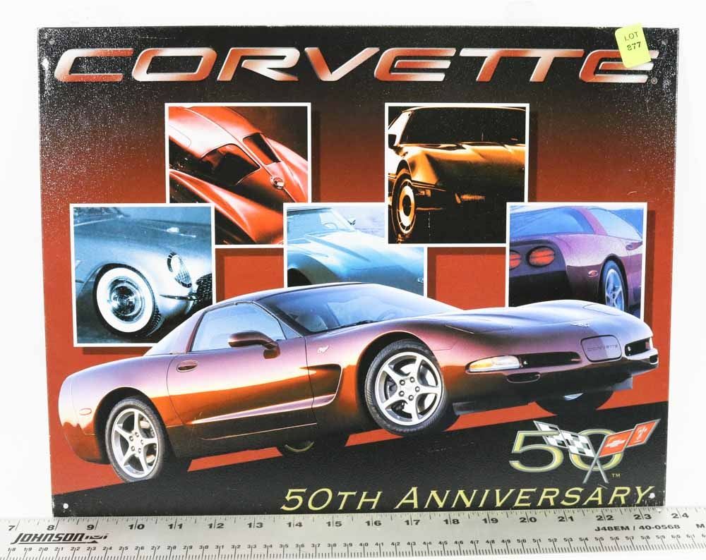 METAL CORVETTE 50 ANNIVERSARY SIGN