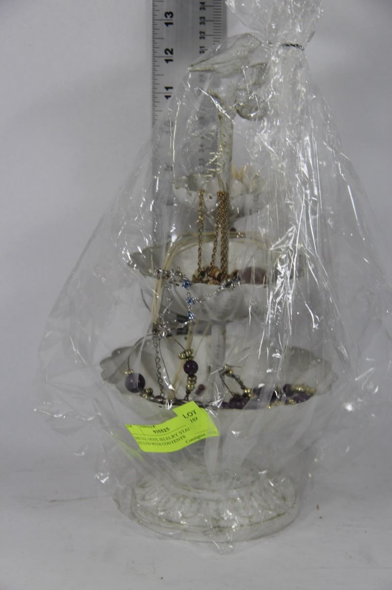 METAL DOVE JEWELLERY STAND WITH CONTENTS