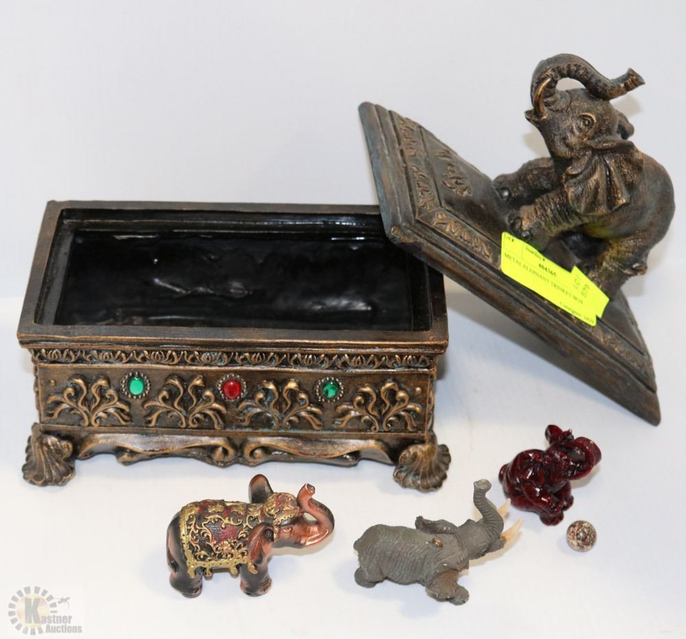 WITH RED AND GREEN RHINESTONES - HAS 3 SMALL ELEPHANTS INSIDE - 9"L X 9"H