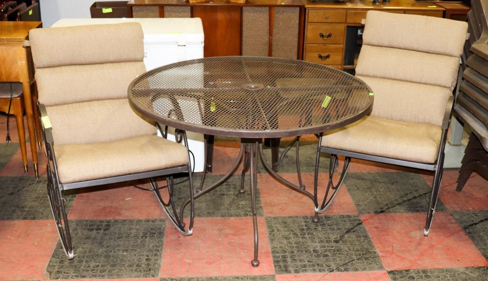METAL PATIO TABLE WITH 2 ROCKING CHAIRS