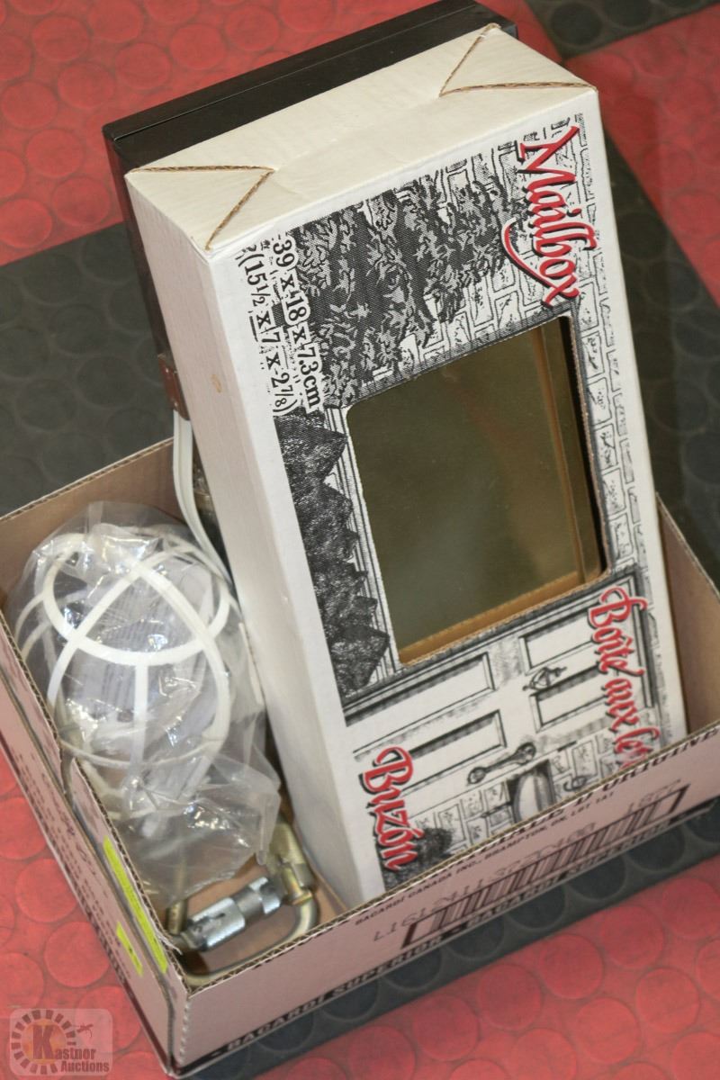 IN BOX, NEW BRASS DOOR PEEPHOLE AND 2 HEAVY DUTY LOCKING CARIBINERS