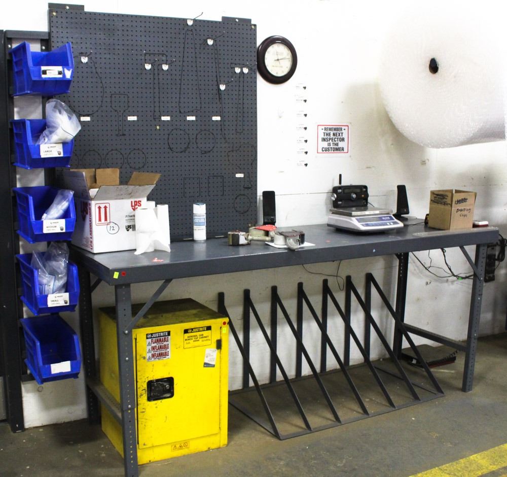 METAL WORK TABLE WITH CONTENTS 96" X 31" X 40"