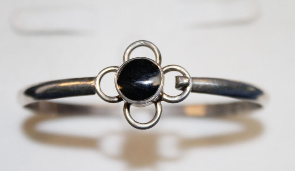 MEXICAN SILVER BANGLE WITH INLAID STONE