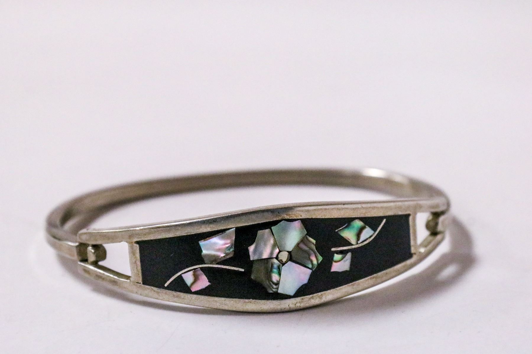 MEXICAN SILVER BRACELET WITH FLORAL INLAY