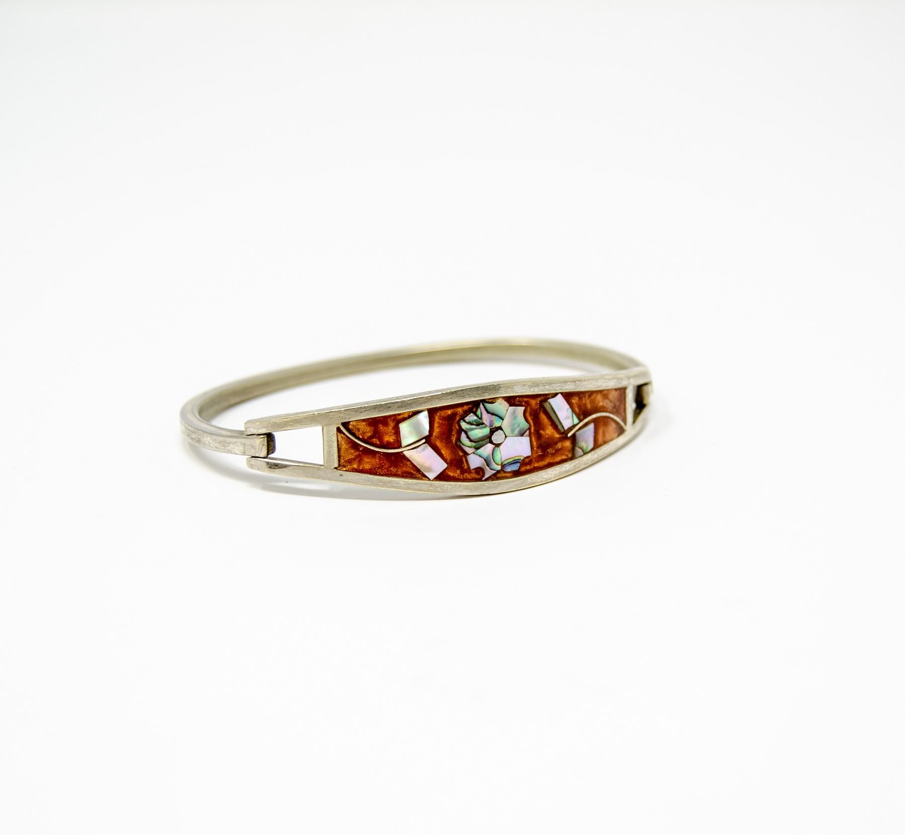 MEXICAN SILVER BRACELET WITH ORANGE INLAY