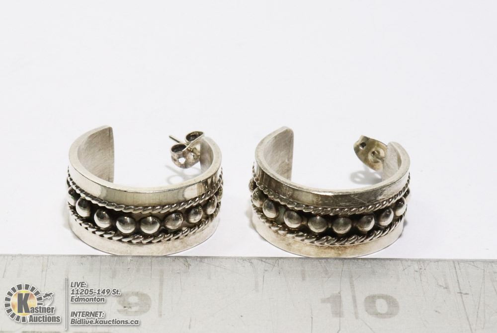 925 MEXICAN SILVER HOOP EARRINGS ON POSTS WITH CENTRE BEAD DESIGN