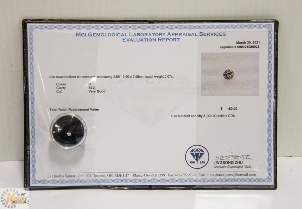 MGI LAB APPRAISED COA GENUINE 0.07ct DIAMOND