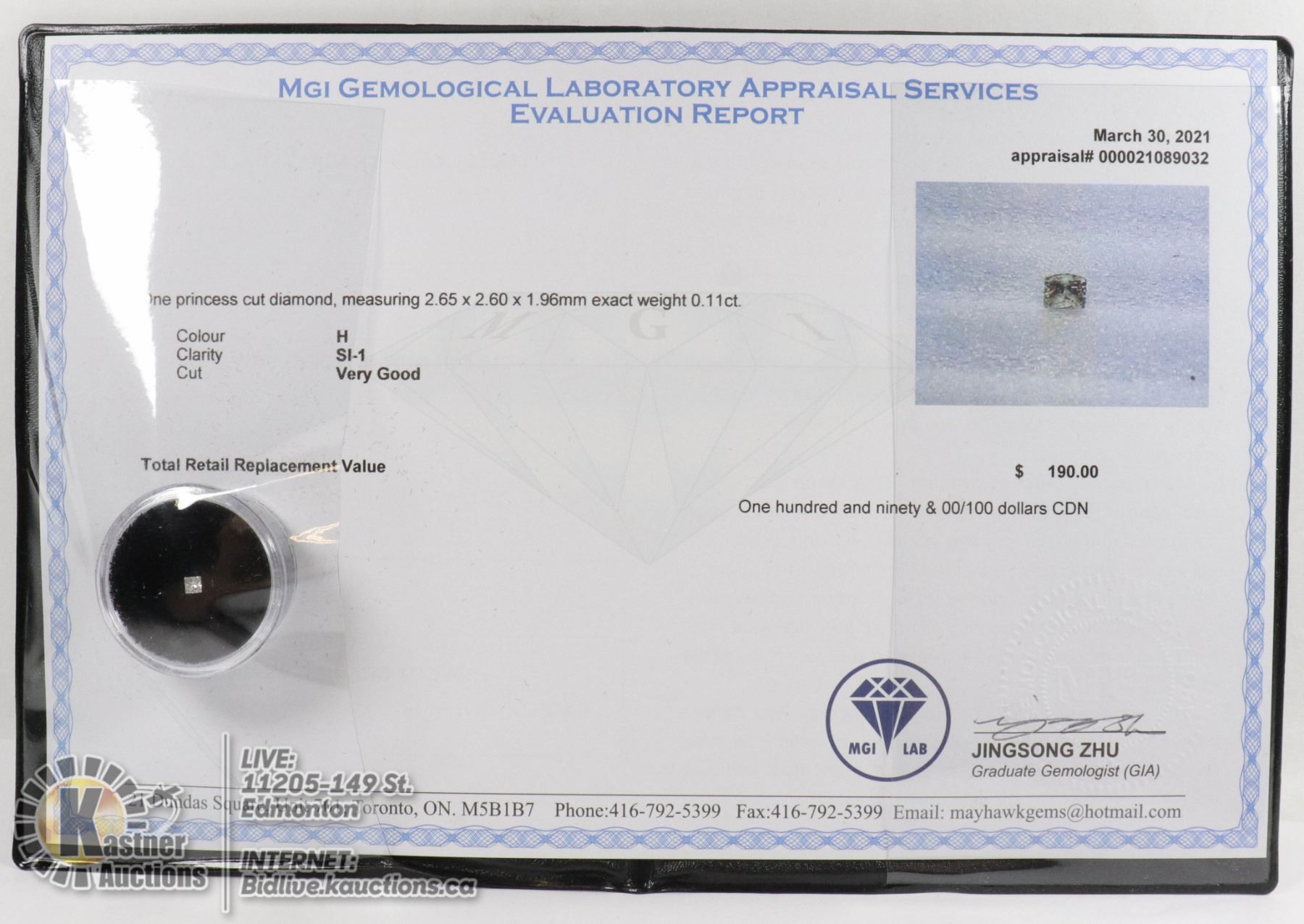 MGI LAB APPRAISED COA GENUINE 0.11ct DIAMOND