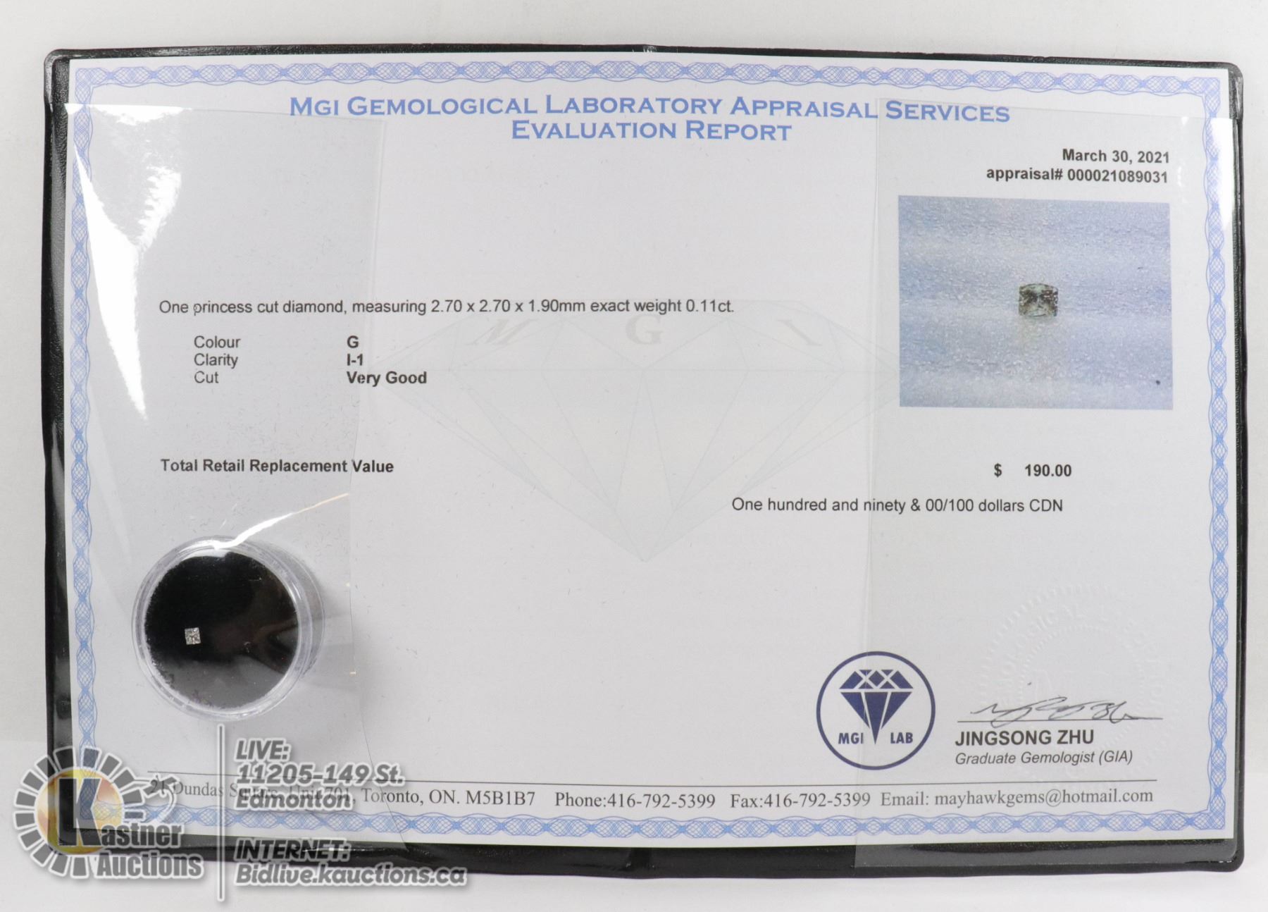 MGI LAB APPRAISED COA GENUINE 0.11ct DIAMOND