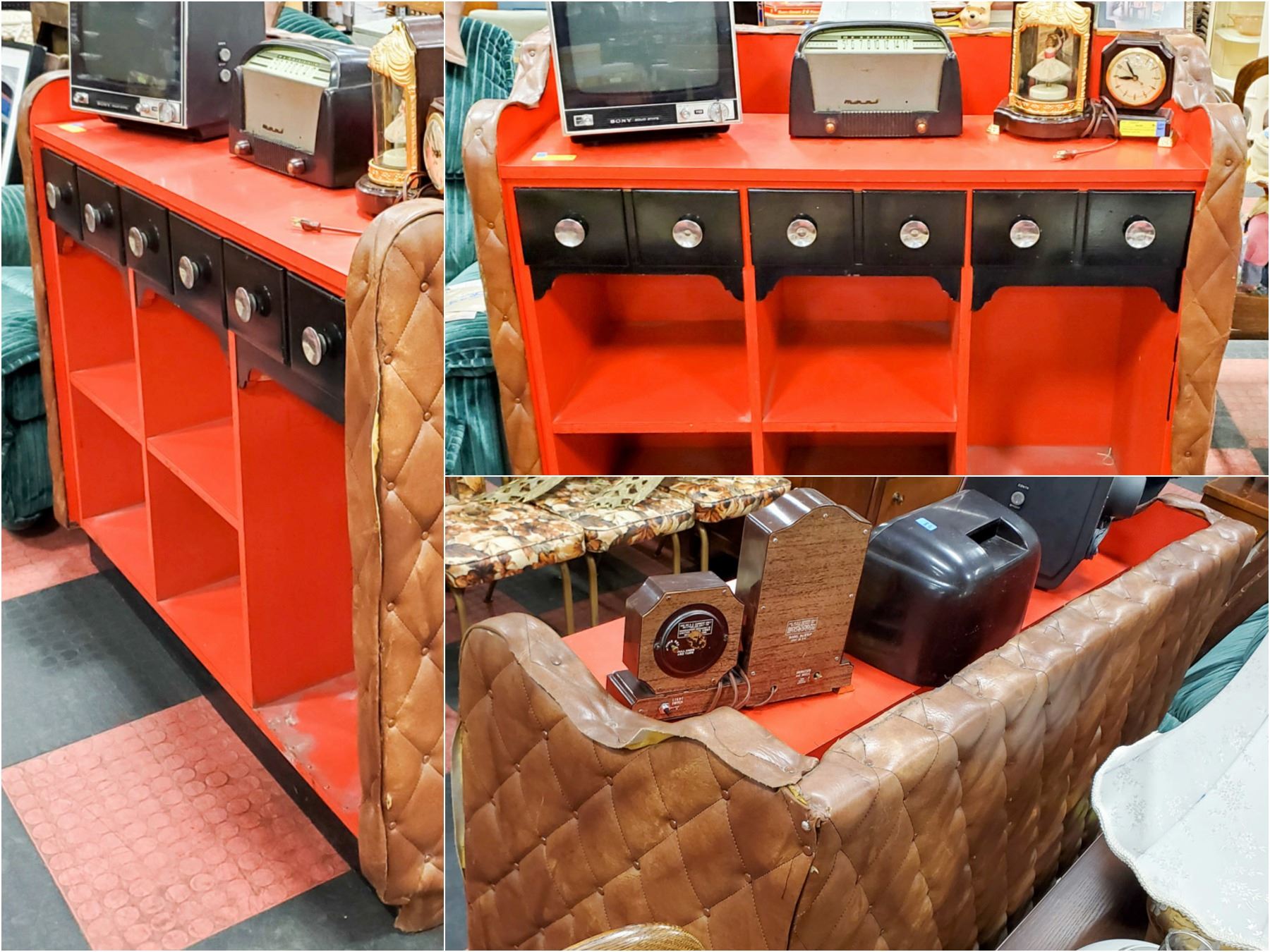 MID-CENTURY TUFTED DRINKING BAR, 48 X 21 X 43