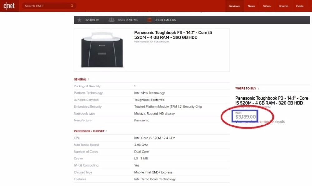 MILITARY GRADE PANASONIC TOUGHBOOK CF-F9 Intel i5