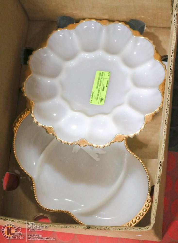 MILK GLASS COLLECTIBLES INCL DEVILLED EGG DISH