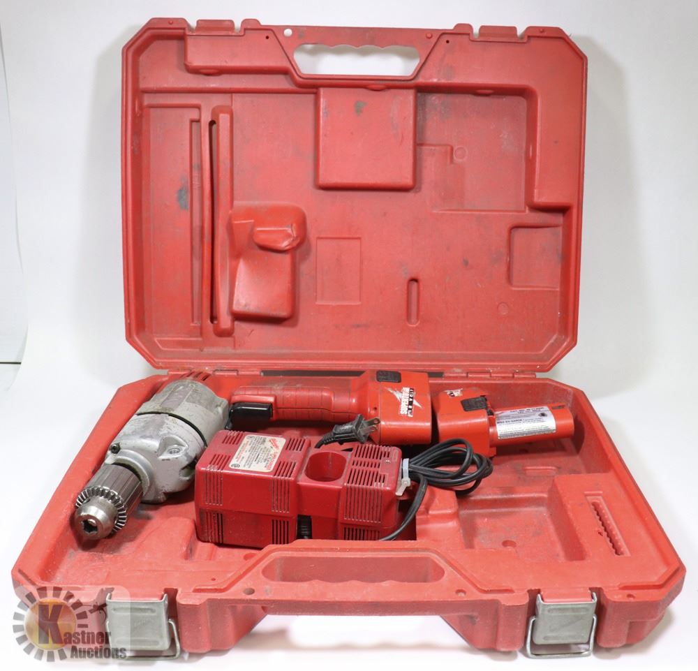 DRILL - CHARGER, 2 WORKING BATTERIES, IN HARD CASE - TOOLS