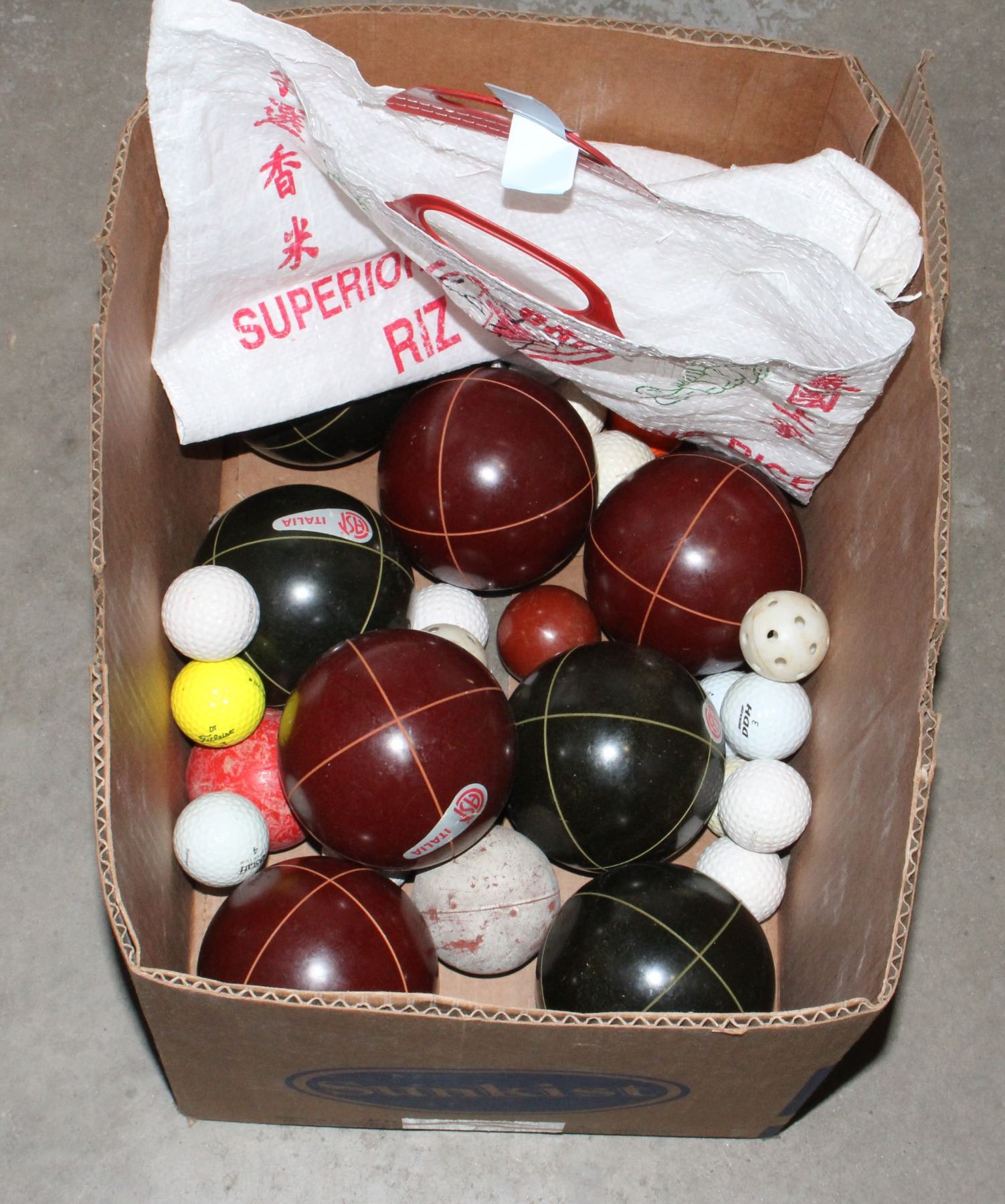 MIXED LOT OF BALLS INCLUDING GOLFBALLS, BOCCE BALL