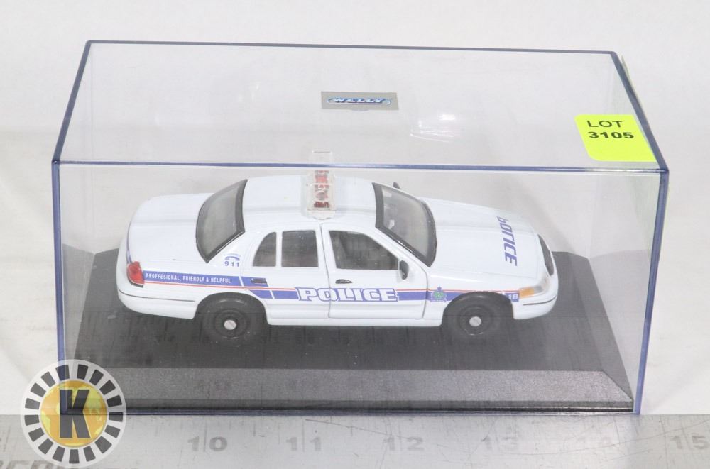 WELLY- #9762 1999 FORD CROWN VICTORIA PETERBOROUGH LAKESIDE POLICE - IN VIEW CASE - CAR DOORS OPEN 1:43 SCALE DIECAST- NONE***ITEM LOCATED IN LETHBRIDGE ALBERTA