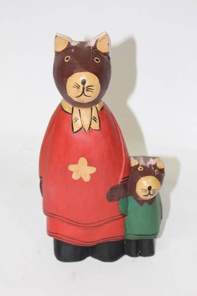 MOMMA AND BABY WOOD CARVED CAT ORNAMENT