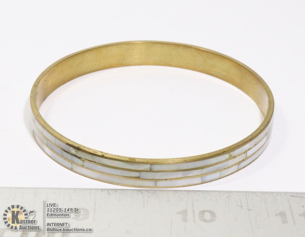 MOTHER OF PEARL BRACELET INLAID IN GOLD TONE METAL