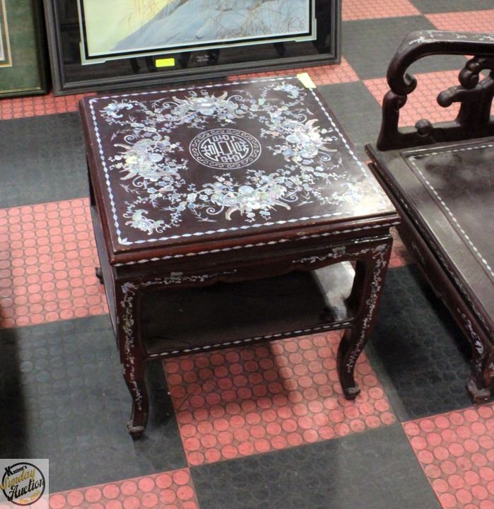 MOTHER OF PEARL INLAID HEAVILY LAQUERED MAHOGANY