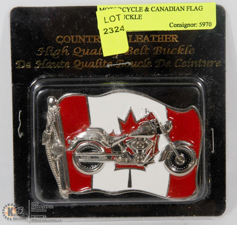 MOTORCYCLE & CANADIAN FLAG BELT BUCKLE
