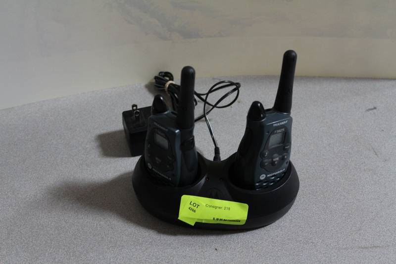 MOTEROLA TWO WAY RADIO PAIR WITH DOCK AND CHARGER
