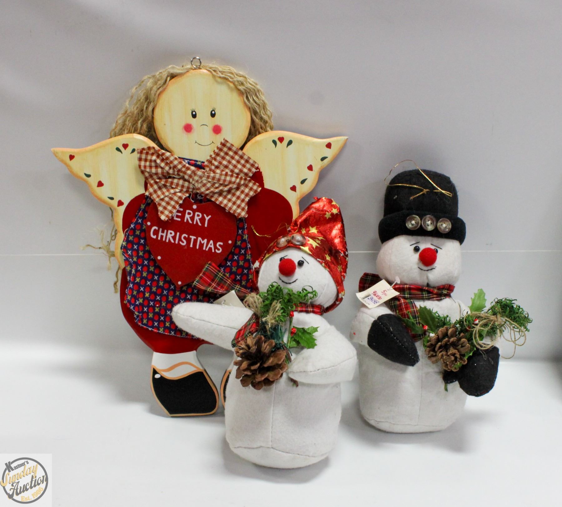 MR. & MRS. SNOWMAN AND WOODEN SNOW ANGEL