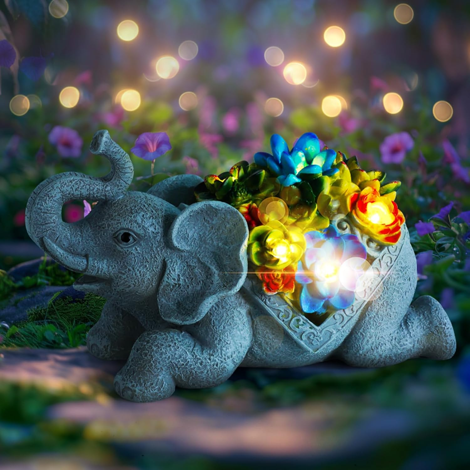 MRCRAFTS SOLAR GARDEN DECOR FOR OUTSIDE, GARDEN STATUES ELEPHANT LAWN ORNAMENTS, OUTDOOR DECORATIONS FOR PATIO & YARD, UNIQUE GIFTS FOR MOM DAD CHRISTAMAS BIRTHDAY | Category: Home Goods & Decor