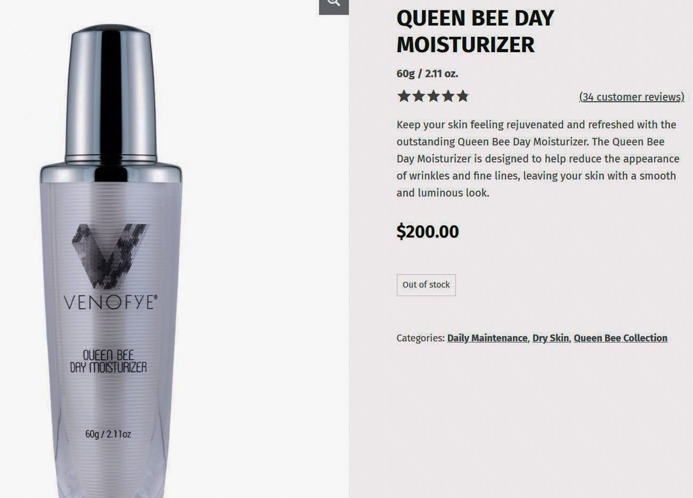 MSRP $200 VENOFYE QUEEN BEE DAY MOISTURIZER