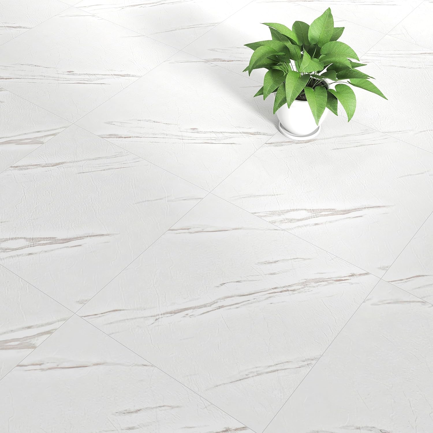 MULGREAT 12''X12'' PEEL AND STICK PVC VINYL FLOOR TILES, 20PCS, 20 SQ. FT, EASY TO INSTALL FOR BATHROOM, KITCHEN, HOME DECORATION WHITE MARBLE